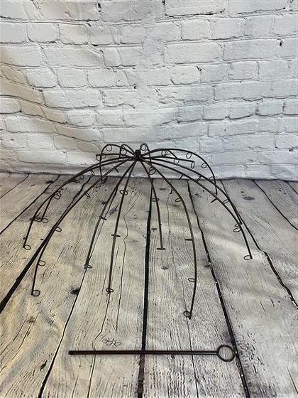 A metal ‘umbrella’ ready to be adorned with cascading baubles