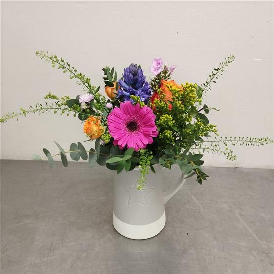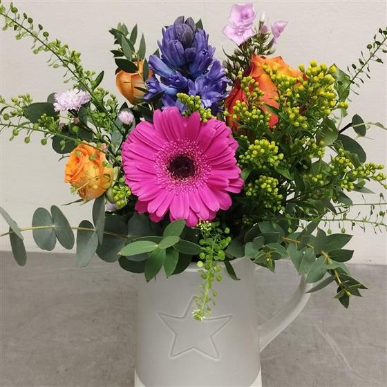 A lovely quality ceramic jug with a debossed STAR, filled with a pretty mix of fresh flowers. A thoughtful gift that’s sure to make her smile, and a keepsake she can enjoy long after the flowers are gone.